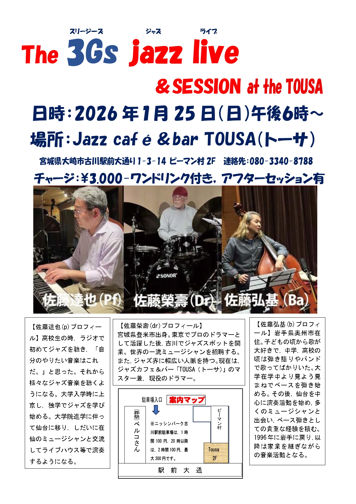 The 3Gs Jazz Live & Session at the TOUSA(スリージーズ ジャズ ライブ&セッション)